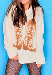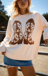 You’ll want to linger a little longer in this cozy favorite! This ultra-soft sweater boasts a relaxed fit and an adorable cowboy boot design that adds a fun western vibe. Ideal for lazy mornings, scenic drives, or whenever you want to feel comfy with a dash of cute.