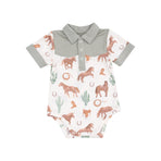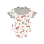 Your little one will be ready to trot into style with this Polo Bodysuit featuring a playful horse print! Crafted from soft viscose fabric, this bodysuit combines comfort with fun, making it the perfect outfit for active babies. Whether it’s playtime, naptime, or a special outing, this bodysuit offers the best of both worlds—charm and coziness.