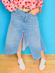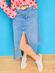 The definition of classic, this denim skirt from We The Free features an asymmetrical, handkerchief-inspired design with pointed hem and flattering seaming for added shape.