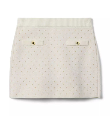 Style is spot-on with this cozy knit skirt. Featuring shimmering dots, faux pockets and gold-tone button details. 51% Cotton/23% Rayon/% Nylon/5% ...