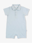 Elevate his everyday style with our boys' pique polo romper. Crafted from soft, breathable pique fabric, this one-piece features a classic polo collar, button placket, and short sleeves for a timeless look. Designed with snap closures for easy changes and a relaxed fit for all-day comfort, it’s perfect for special outings or casual playdates. A versatile wardrobe essential for your little gentleman!