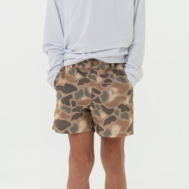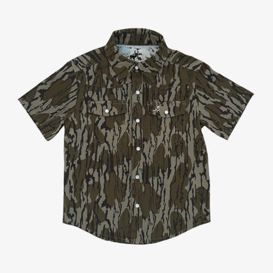 Adorable performance pearl snap. Timeless bottomland & mallard sky for little adventurers.