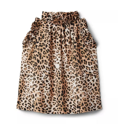 For dressy or casual moments, this mock neck leopard print top with ruffle details at the sleeves is a fun favorite.