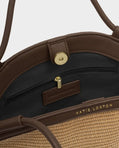Inspired by sun-soaked escapes, the Florence Mini Tote Bag combines natural raffia with buttery-soft vegan leather trims. It features an internal zip pocket for essentials, a secure magnetic closure, and playful tassel detailing.