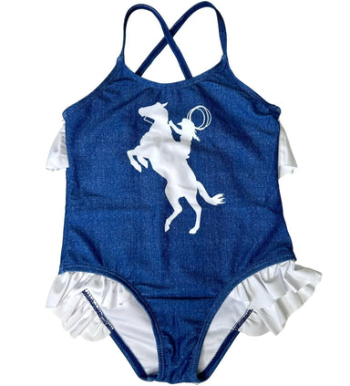 Our chambray top gets a fashionable twist with lace details. A ruffle collar makes it even better. 100% Cotton Chambray