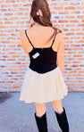 Meet the Tinsel Kiss Mini Dress — a mini dress with puffed bottom and square neckline, perfect for holiday nights!