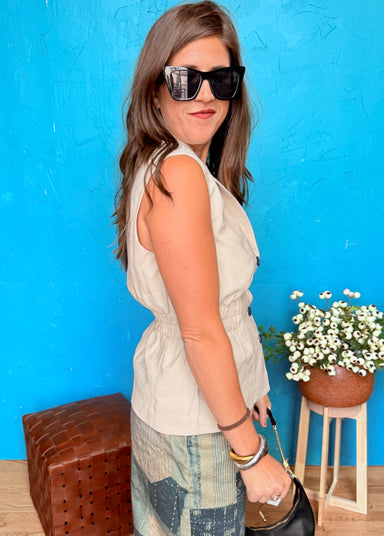 Elevate your ensemble with this Waist Cinched Vest, designed to accentuate your silhouette with a tailored fit. Its structured design offers a refi...
