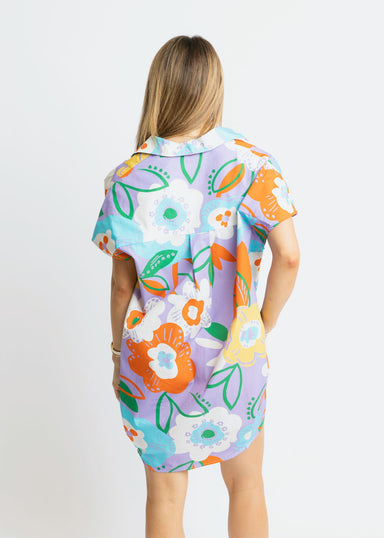 This playful tropical garden dress in purple by Karlie features a charming floral print, V-neck collar, and easy pullover design. With its short ...