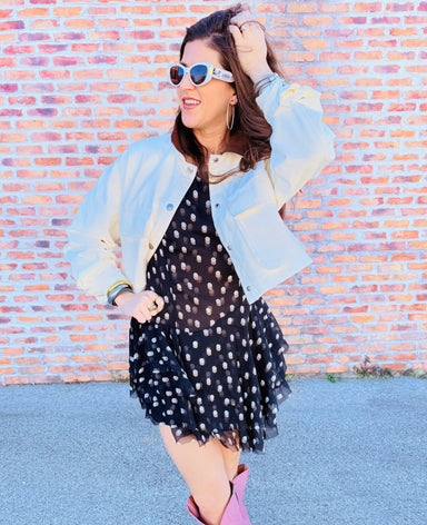 This charming mini dress combines a breezy, flattering cut with eye-catching printed details that turn heads. The tiered ruffle skirt adds movement...