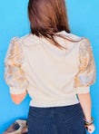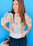 Metallic Puff Sleeve Knit Top