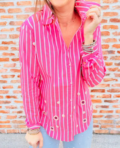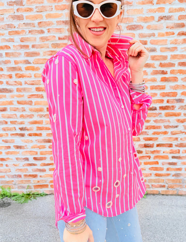 Crafted from a breathable cotton-nylon blend with just the right amount of stretch, this striped blouse hugs your frame in all the right ways. The ...