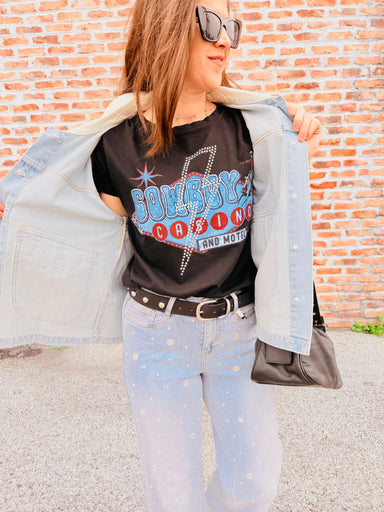 Slip into the Amelda Pearl Tee and let that silky satin fabric do all the talking. This v-neck beauty combines effortless elegance with a flatterin...