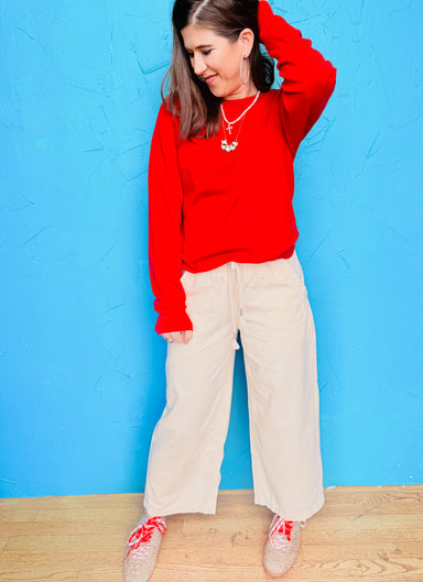 Rock a bold, cropped cut with statement seams that demand attention. Crafted from a comfy cotton blend, this long-sleeve top delivers an easy-going...