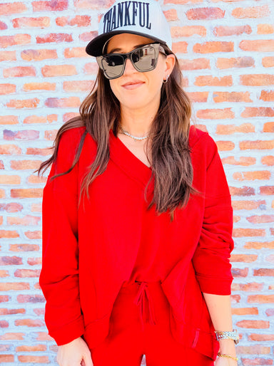 This cozy lounge pullover boasts a soft knit design, a flattering V-neck, long sleeves, and a trendy high-low hem. With its roomy, oversized fit an...