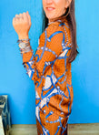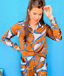This Hermes Woven Button Down Shirt, made entirely from soft, breathable 100% Viscose, adds a splash of fun with its vibrant burnt orange pattern—ideal for brightening up your Fall wardrobe!