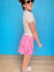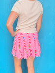 This Pink Floral Vine Scallop Skort is the ultimate blend of sporty and chic. The scallop feature at the hem adds a cute touch, while the comfy fabric ensures all-day comfort. Stay active and stylish with this must-have piece!