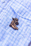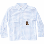 Calling all cowboys! This adorable boys fishing shirt is light-weight and sleeves roll up and button. There is a boots & hat accent hand-stitched on the left chest pocket.