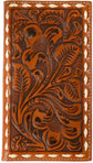 Saddle up your style with this Nocona rodeo wallet—crafted from genuine leather that's built to last. The front showcases eye-catching floral embossing framed by distinctive twisted white buck lace stitching that adds serious character. Inside, you'll find plenty of room for your cards, cash, and checkbook, plus a handy ID window to keep essentials organized. Perfect for the cowboy who refuses to compromise on looks or function.
