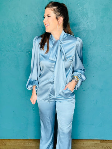Slip into the Amelda Pearl Tee and let that silky satin fabric do all the talking. This v-neck beauty combines effortless elegance with a flatterin...