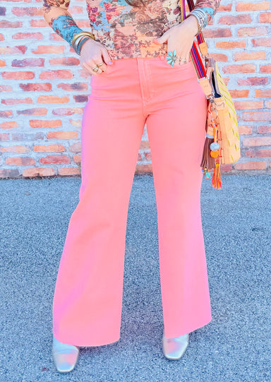 More Options Available$112.00Meet the Fiona Wide Leg Pant—your new go-to for effortless style! These high-rise jeans in a gorgeous peach cream shade feature a relaxed, cozy fit...