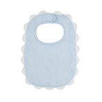 The Blue Scallop Bib is a charming and practical accessory for mealtime. Crafted with a delightful seersucker fabric, this bib showcases an elegant scallop ric-rac trim that adds a touch of sophistication. The cotton interlock backing ensures a soft and gentle feel against the skin, providing comfort for your little one.