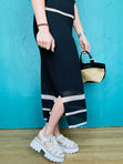 This Joesph Ribkoff Crochet Midi Skirt features a partially lined skirt, elastic waistband, and gorgeous crochet detailing. This versatile skirt is perfect for days spent shopping or al fresco dinners, pair with the matching crochet top for the perfect summer fit!