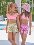 Metallic track shorts with a shiny finish that'll make you stand out in style! Available in pink and gold, perfect for adding a touch of glitz to your workout gear or laid-back wardrobe. Elastic waistband shorts for a secure and comfy fit during any activity. These lightweight, breathable shorts are perfect for hitting the gym or kicking back on the weekends.