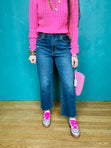 The Sundaze jean in Socialite Vintage is your perfect day-to-day jean, featuring a flattering high rise, roomy straight legs, and timeless dark wash.